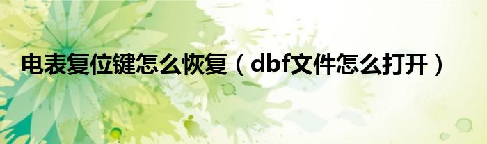 大家好,慧慧来为大家解答以上问题,电表复位键怎么恢复,dbf文件怎么打开很多人还不知道,现在让我们一起来看看吧!
