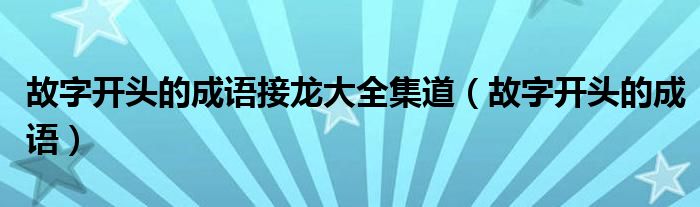 大家好,小晋来为大家解答以下问题,关于故字开头的成语接龙大全集道,故字开头的成语很多人还不知道,今天让我们一起来看看吧!