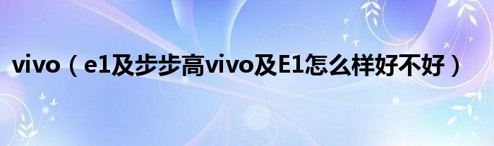 大家好,小常来为大家解答以上问题。vivo,e1及步步高vivo及E1怎么样好不好很多人还不知道,现在让我们一起来看看吧!