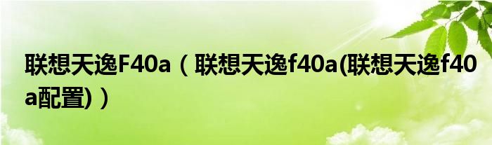 联想天逸F40a(联想天逸f40a(联想天逸f40a配置))