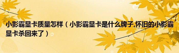 大家好,小常来为大家解答以上问题。小影霸显卡质量怎样,小影霸显卡是什么牌子,怀旧的小影霸显卡杀回来了很多人还不知道,现在让我们一起来看看吧!
