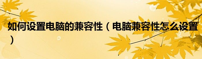 关于如何设置电脑的兼容性,电脑兼容性怎么设置这个很多人还不知道,今天菲菲来为大家解答以上的问题,现在让我们一起来看看吧!