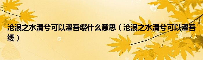 关于沧浪之水清兮可以濯吾缨什么意思,沧浪之水清兮可以濯吾缨这个很多人还不知道,今天菲菲来为大家解答以上的问题,现在让我们一起来看看吧!