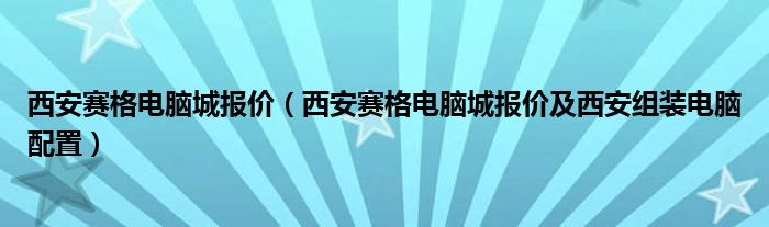 1,西安赛格电脑城报价 西安组装电脑配置:价格还可以吧,差不多~~