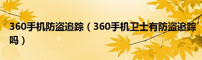 大家好,小常来为大家解答以上问题。360手机防盗追踪,360手机卫士有防盗追踪吗很多人还不知道,现在让我们一起来看看吧!