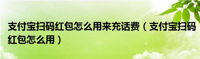 大家好,小晋来为大家解答以下问题,关于支付宝扫码红包怎么用来充话费,支付宝扫码红包怎么用很多人还不知道,今天让我们一起来看看吧!