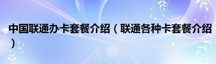 大家好,小常来为大家解答以上问题。中国联通办卡套餐介绍,联通各种卡套餐介绍很多人还不知道,现在让我们一起来看看吧!