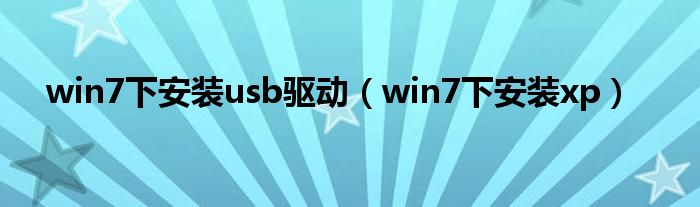 win7下安装usb驱动(win7下安装xp)