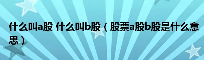 关于什么叫a股 什么叫b股,股票a股b股是什么意思这个很多人还不知道,今天菲菲来为大家解答以上的问题,现在让我们一起来看看吧!