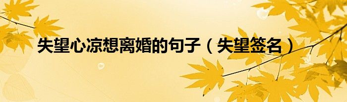 大家好,慧慧来为大家解答以上问题,失望心凉想离婚的句子,失望签名很多人还不知道,现在让我们一起来看看吧!