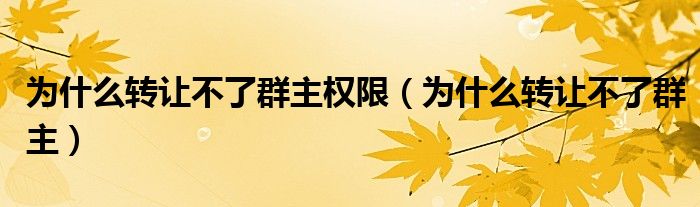 大家好,小晋来为大家解答以下问题,关于为什么转让不了群主权限,为什么转让不了群主很多人还不知道,今天让我们一起来看看吧!