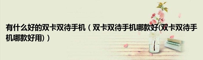 大家好,小常来为大家解答以上问题。有什么好的双卡双待手机,双卡双待手机哪款好(双卡双待手机哪款好用)很多人还不知道,现在让我们一起来看看吧!