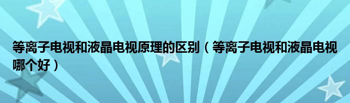 1、作为日常生活中必不可少的一种家用电器,电视可以帮助我们打发时间和提供娱乐。随着现代科技的不断进步,越来越多的高科技电子产品出现在我们身边。等离子电视机就是一个很好的例子。那么等离子电视和液晶电视哪个好呢?下面就带大家看看两者的区别吧!