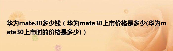 大家好,小常来为大家解答以上问题。华为mate30多少钱,华为mate30上市价格是多少(华为mate30上市时的价格是多少)很多人还不知道,现在让我们一起来看看吧!