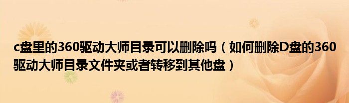 大家好,今天小悦来为大家解答以上问题。c盘里的360驱动大师目录可以删除吗,如何删除D盘的360驱动大师目录文件夹或者转移到其他盘很多人还不知道,现在让我们一起来看看吧!