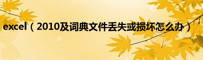 大家好,今天小悦来为大家解答以上问题。excel,2010及词典文件丢失或损坏怎么办很多人还不知道,现在让我们一起来看看吧!