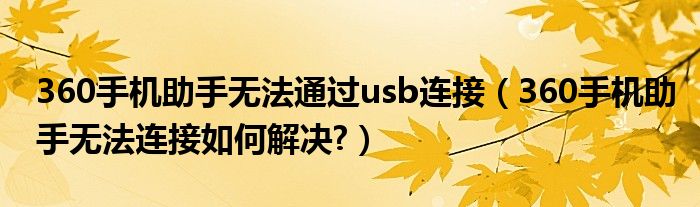 大家好,今天小悦来为大家解答以上问题。360手机助手无法通过usb连接,360手机助手无法连接如何解决?很多人还不知道,现在让我们一起来看看吧!
