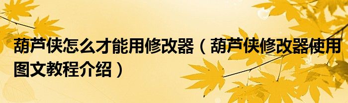 大家好,今天小悦来为大家解答以上问题。葫芦侠怎么才能用修改器,葫芦侠修改器使用图文教程介绍很多人还不知道,现在让我们一起来看看吧!