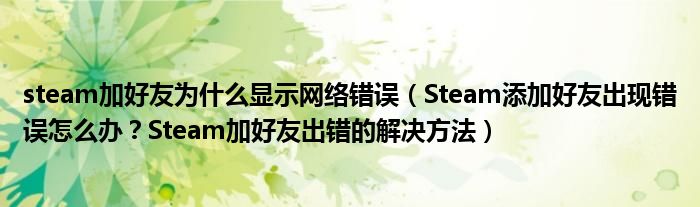 大家好,今天小悦来为大家解答以上问题。steam加好友为什么显示网络错误,Steam添加好友出现错误怎么办?Steam加好友出错的解决方法很多人还不知道,现在让我们一起来看看吧!