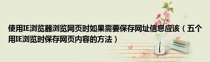 大家好,今天小悦来为大家解答以上问题。使用IE浏览器浏览网页时如果需要保存网址信息应该,五个用IE浏览时保存网页内容的方法很多人还不知道,现在让我们一起来看看吧!