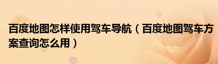 大家好,今天小悦来为大家解答以上问题。百度地图怎样使用驾车导航,百度地图驾车方案查询怎么用很多人还不知道,现在让我们一起来看看吧!