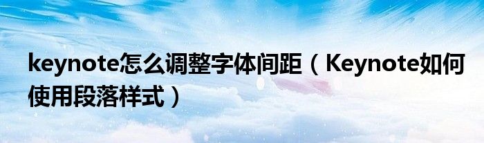 大家好,今天小悦来为大家解答以上问题。keynote怎么调整字体间距,Keynote如何使用段落样式很多人还不知道,现在让我们一起来看看吧!