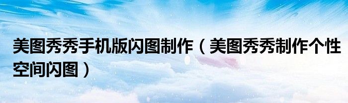 大家好,今天小悦来为大家解答以上问题。美图秀秀手机版闪图制作,美图秀秀制作个性空间闪图很多人还不知道,现在让我们一起来看看吧!