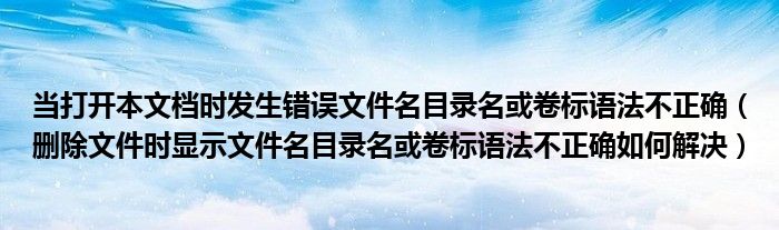 大家好,今天小悦来为大家解答以上问题。当打开本文档时发生错误文件名目录名或卷标语法不正确,删除文件时显示文件名目录名或卷标语法不正确如何解决很多人还不知道,现在让我们一起来看看吧!