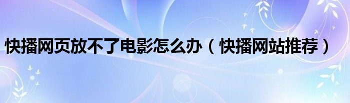 大家好,慧慧来为大家解答以上问题,快播网页放不了电影怎么办,快播网站推荐很多人还不知道,现在让我们一起来看看吧!