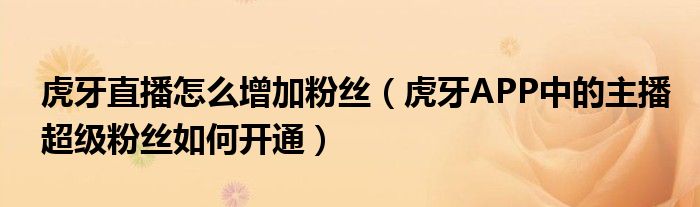 大家好,今天小悦来为大家解答以上问题。虎牙直播怎么增加粉丝,虎牙APP中的主播超级粉丝如何开通很多人还不知道,现在让我们一起来看看吧!