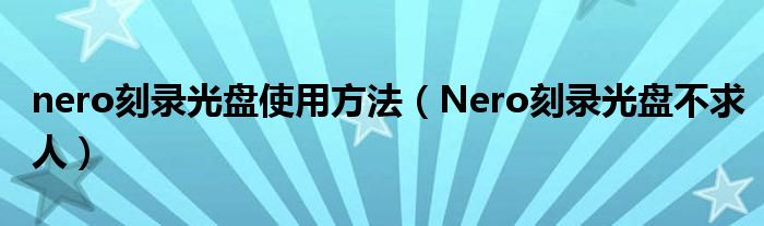 大家好,今天小悦来为大家解答以上问题。nero刻录光盘使用方法,Nero刻录光盘不求人很多人还不知道,现在让我们一起来看看吧!