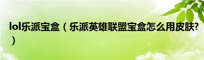 大家好,今天小悦来为大家解答以上问题。lol乐派宝盒,乐派英雄联盟宝盒怎么用皮肤?很多人还不知道,现在让我们一起来看看吧!