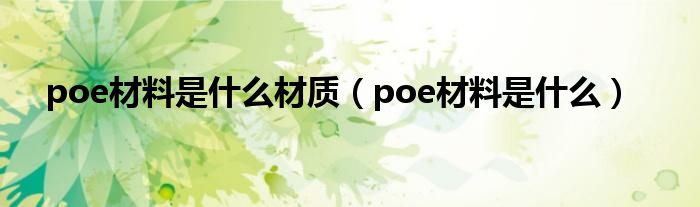 关于poe材料是什么材质,poe材料是什么这个很多人还不知道,今天菲菲来为大家解答以上的问题,现在让我们一起来看看吧!