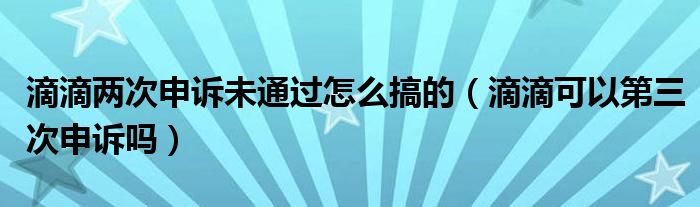 大家好,跳跳为你解答以上问题。滴滴两次申诉未通过怎么搞的,滴滴可以第三次申诉吗这个问题很多人还不知道,现在让我们一起来看看吧!