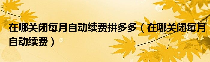 大家好,跳跳为你解答以上问题。在哪关闭每月自动续费拼多多,在哪关闭每月自动续费这个问题很多人还不知道,现在让我们一起来看看吧!