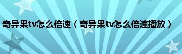大家好,跳跳为你解答以上问题。奇异果tv怎么倍速,奇异果tv怎么倍速播放这个问题很多人还不知道,现在让我们一起来看看吧!
