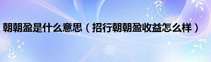 大家好,今天小悦来为大家解答以上问题。朝朝盈是什么意思,招行朝朝盈收益怎么样很多人还不知道,现在让我们一起来看看吧!