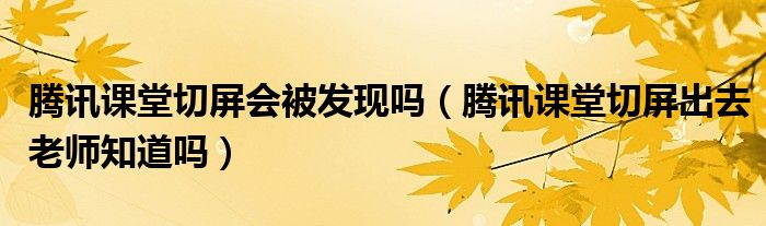 大家好,跳跳为你解答以上问题。腾讯课堂切屏会被发现吗,腾讯课堂切屏出去老师知道吗这个问题很多人还不知道,现在让我们一起来看看吧!