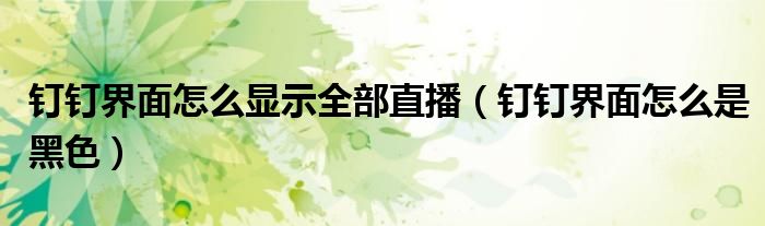 大家好,跳跳为你解答以上问题。钉钉界面怎么显示全部直播,钉钉界面怎么是黑色这个问题很多人还不知道,现在让我们一起来看看吧!