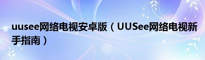 大家好,今天小悦来为大家解答以上问题。uusee网络电视安卓版,UUSee网络电视新手指南很多人还不知道,现在让我们一起来看看吧!
