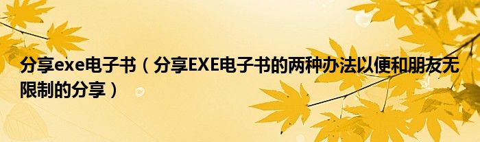 大家好,今天小悦来为大家解答以上问题。分享exe电子书,分享EXE电子书的两种办法以便和朋友无限制的分享很多人还不知道,现在让我们一起来看看吧!