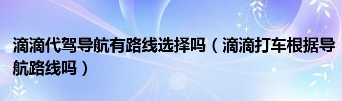 大家好,跳跳为你解答以上问题。滴滴代驾导航有路线选择吗,滴滴打车根据导航路线吗这个问题很多人还不知道,现在让我们一起来看看吧!