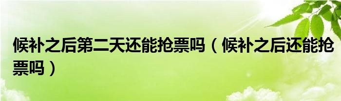 大家好,跳跳为你解答以上问题。候补之后第二天还能抢票吗,候补之后还能抢票吗这个问题很多人还不知道,现在让我们一起来看看吧!