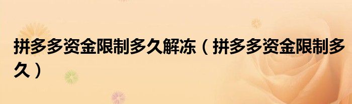 大家好,跳跳为你解答以上问题。拼多多资金限制多久解冻,拼多多资金限制多久这个问题很多人还不知道,现在让我们一起来看看吧!
