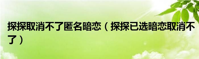 大家好,跳跳为你解答以上问题。探探取消不了匿名暗恋,探探已选暗恋取消不了这个问题很多人还不知道,现在让我们一起来看看吧!