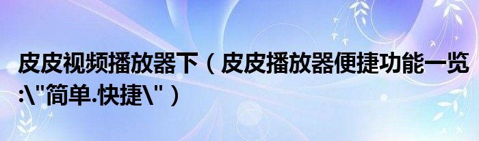 大家好,今天小悦来为大家解答以上问题。皮皮视频播放器下,皮皮播放器便捷功能一览:"简单.快捷"很多人还不知道,现在让我们一起来看看吧!