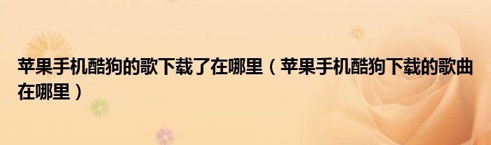 大家好,跳跳为你解答以上问题。苹果手机酷狗的歌下载了在哪里,苹果手机酷狗下载的歌曲在哪里这个问题很多人还不知道,现在让我们一起来看看吧!