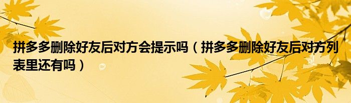 大家好,跳跳为你解答以上问题。拼多多删除好友后对方会提示吗,拼多多删除好友后对方列表里还有吗这个问题很多人还不知道,现在让我们一起来看看吧!