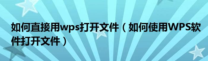 大家好,今天小悦来为大家解答以上问题。如何直接用wps打开文件,如何使用WPS软件打开文件很多人还不知道,现在让我们一起来看看吧!