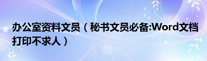 大家好,今天小悦来为大家解答以上问题。办公室资料文员,秘书文员必备:Word文档打印不求人很多人还不知道,现在让我们一起来看看吧!